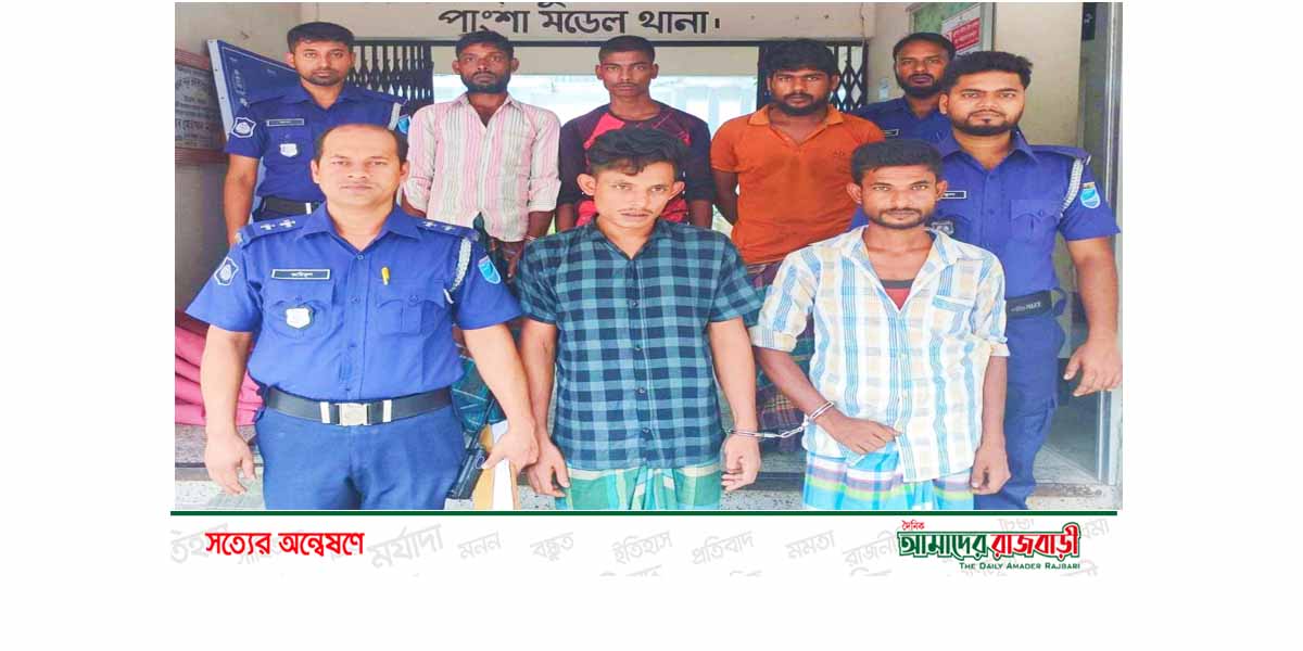 পাংশা থানা সূত্র জানায়, গতকাল শনিবার দুপুর ৩টা থেকে রাত পর্যন্ত গোয়ালন্দ ঘাট থানা, পাংশা থানা ও কুষ্টিয়া জেলার খোকসা থানা এলাকায় অভিযান চালিয়ে তাদের গ্রেপ্তার করা হয়। গ্রেপ্তারকৃতরা হলো খোকসা থানার শেখপাড়া বিহারিয়া গ্রামের মো. সাব্বির মন্ডল (২৪), পাংশা উপজেলার দক্ষিণ খোর্দ্দবসা গ্রামের মো. জীবন মোল্লা (২৫), চর কলিমহর গ্রামের মো. সোহেল মন্ডল (৩৪), মো. সোহেল মন্ডল (৩২), দক্ষিণ খোর্দ্দবসা গ্রামের মো. তালেব মোল্লা (২২)।
