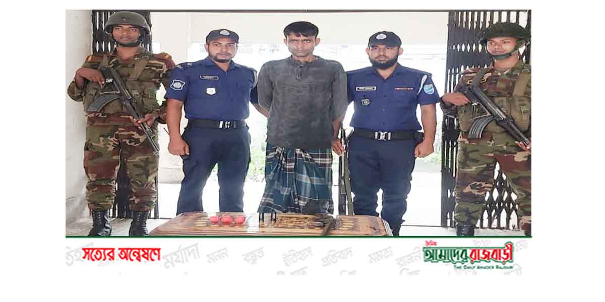 পাংশার কশবামাঝাইলে যৌথবাহিনী অভিযান চালিয়ে বন্দুক গুলি ও বোমাসহ মকলেছুর রহমান ওরফে মকলেছ মন্ডল (৩৬) নামে এক অস্ত্রধারী সন্ত্রাসীকে গ্রেফতার করেছে। শনিবার ভোরে কশবাঝাইল ইউনিয়নের সুবর্নখোলা গ্রাম থেকে তাকে গ্রেফতার করা হয়। মকছেদ ওই এলাকার মৃত ছবেদ আলীর ছেলে।