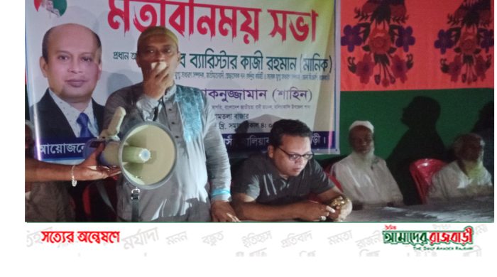 বালিয়াকান্দিতে রাজবাড়ী-২ সংসদীয় আসনের ধানের শীষের মনোনয়ন প্রত্যাশি কেন্দ্রীয় স্বেচ্ছাসেবক দলের সাবেক যুগ্ম সাধারণ সম্পাদক ব্যারিস্টার কাজী রহমান মানিক এর মতবিনিময় সভা অনুষ্ঠিত হয়েছে। শনিবার বিকালে বালিয়াকান্দি সদর ইউনিয়নবাসির আয়োজনে