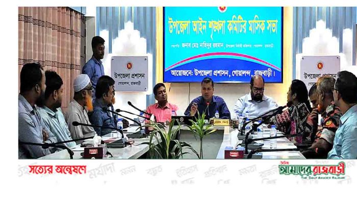 রাজবাড়ীর গোয়ালন্দ উপজেলায় আইনশৃঙ্খলা কমিটির মাসিক সভা অনুষ্ঠিত হয়েছে। বুধবার উপজেলা পরিষদ হলরুমে এ সভা অনুষ্ঠিত হয়। উপজেলা নির্বাহী অফিসার মো. নাহিদুর রহমানের সভাপতিত্বে উপস্থিত ছিলেন উপজেলা স্বাস্থ্য ও পরিবার