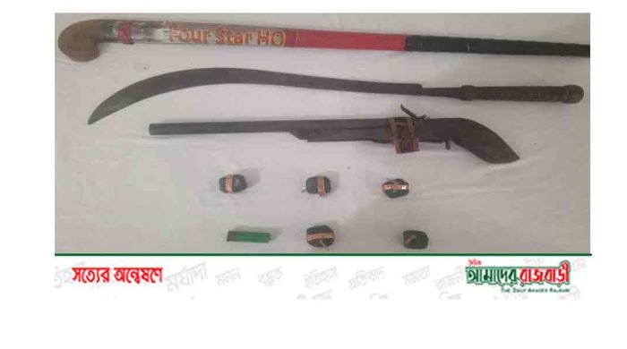 রাজবাড়ী পাংশার কশবামাজাইলে যৌথবাহিনীর সফল অভিযানে একটি ওয়ান শুটারগানসহ দেশীয় তৈরি অস্ত্র উদ্ধার হয়েছে। গতকাল মঙ্গলবার সকাল সাড়ে ৭টার দিকে উপজেলার কশবামাজাইল ইউনিয়নের শান্তিখোলা গ্রামের মনির বিশ্বাস এর বাড়ির পশ্চিম