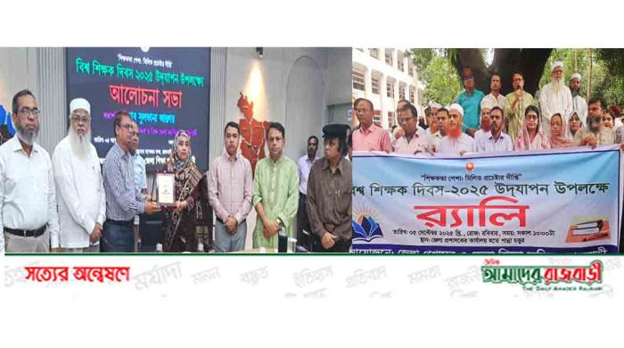“শিক্ষকতা পেশা: মিলিত প্রচেষ্টার দীপ্তি” প্রতিপাদ্যকে ধারণ করে রাজবাড়ীতে বর্ণাঢ্য র্যালি ও আলোচনা সভার মধ্য দিয়ে উদযাপিত হয়েছে বিশ্ব শিক্ষক দিবস। রোববার সকাল ১০টায় জেলা প্রশাসন ও জেলা শিক্ষা অফিসের