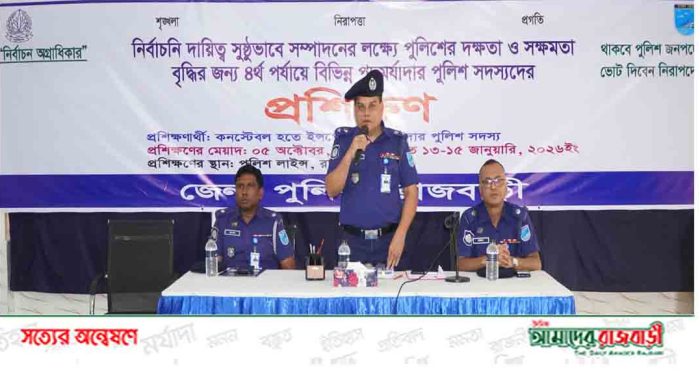 ‘থাকবে পুলিশ জনপদে, ভোট দিবেন নিরাপদে’ প্রতিপাদ্যকে সামনে রেখে রাজবাড়ী পুলিশ লাইন্স ড্রিল শেডে গত রোববার সকালে প্রশিক্ষণ কোর্সের উদ্বোধন হয়েছে। নির্বাচনী দায়িত্ব সুষ্ঠুভাবে সম্পাদনে পুলিশের দক্ষতা ও সক্ষমতা বৃদ্ধির