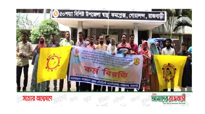 নিয়োগবিধি সংশোধন পূর্বক স্নাতক/সমমান, ইন সার্ভিস ডিপ্লোমা প্রশিক্ষণ এবং ১৪তম গ্রেড প্রদান, পদোন্নতির ক্ষেত্রে ধারাবাহিকভাবে পরবর্তী উচ্চতর গ্রেডসহ মোট ৬ দফা দাবিতে অনির্দিষ্টকালের জন্য কর্মবিরতি পালন করছেন গোয়ালন্দ উপজেলা স্বাস্থ্য