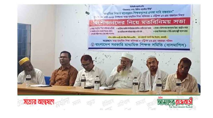 ‘মাধ্যমিক শিক্ষার মানোন্নয়ন, শিক্ষকবৃন্দের ৫ দফা দাবি বাস্তবায়ন’ স্লোগানে বিশ্ব শিক্ষক দিবস উপলক্ষে স্বতন্ত্র মাধ্যমিক শিক্ষা অধিদপ্তর ও এন্ট্রিপদ ৯ম গ্রেড বাস্তবায়ন বিষয়ক অংশীজনদের নিয়ে মতবিনিময় সভা অনুষ্ঠিত হয়েছে। গত